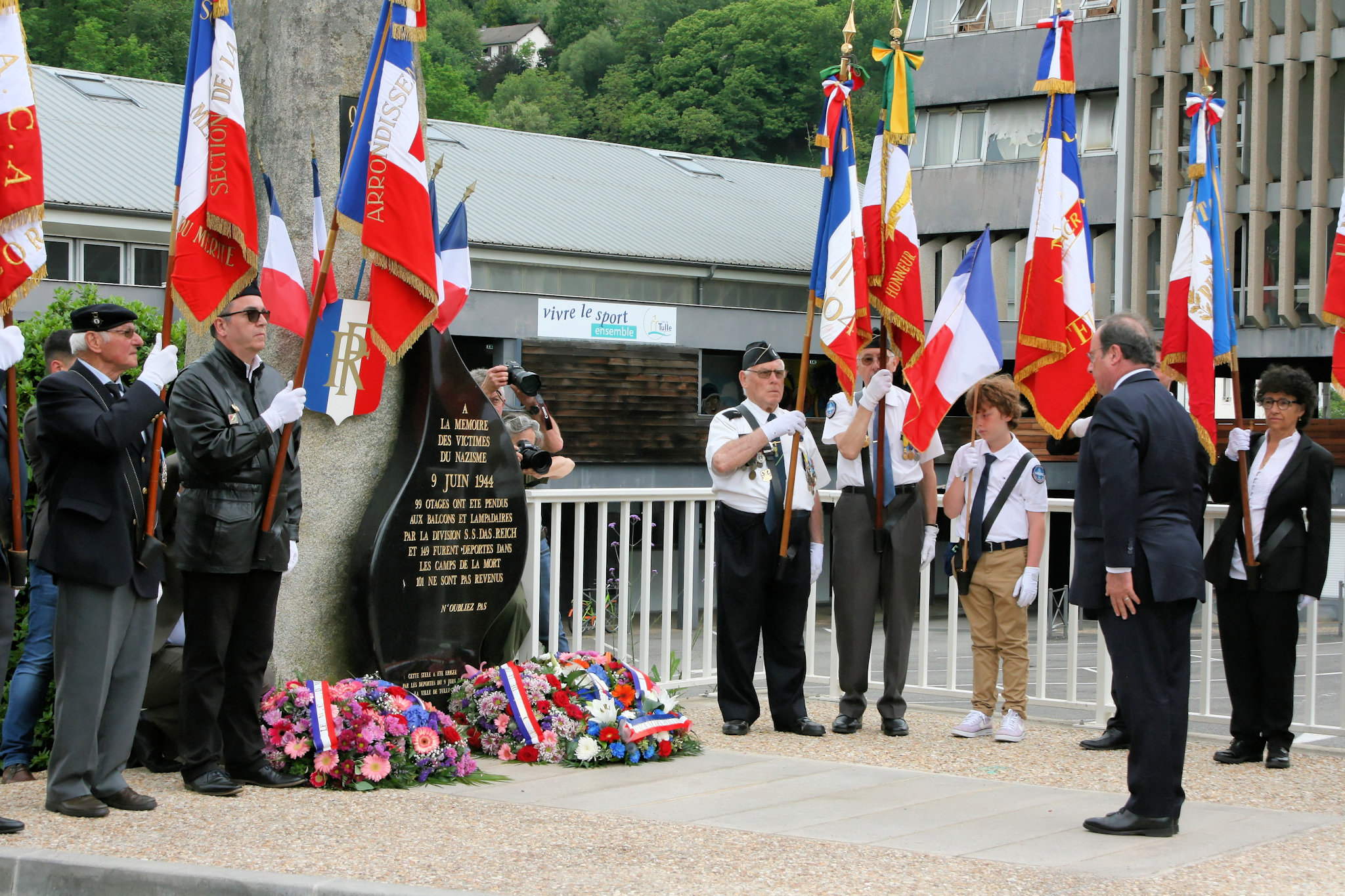 Nach dem Gottesdienst am Nachmittag versammelte man sich am Bahnhof von Tulle, auf dem „Place Smolensk“, zum gemeinsamen Gedenken. Zur Ehrung und als Hommage an die Ermordeten, Vermissten, Gefolterten und Deportierten wurden Kränze niedergelegt. Als die Kapelle den Trauermarsch intonierte, setzte sich der lange Zug in Bewegung – entlang an Balkonen und Straßenlaternen, die mit Blumengebinden für jeden der 99 Ermordeten geschmückt waren. Voran gingen die Fahnenträger der Opfer- und Widerstandsverbände, es folgten hoch dekorierte Veteranen und Militärs, Ex-Staatspräsident François Hollande, Bürgermeister Bernard Combes, der Vorsitzende des Comité des Martyrs Tulle, Roland Gonieau, und viele Amt- und Würdenträger, Feuerwehrleute, Schülerinnen und Schüler, Familien mit Kindern, Gäste aus Schorndorf. Die Straßen der Innenstadt waren gesäumt von Menschen, die sich in den Zug einreihten, alt und jung nebeneinander.